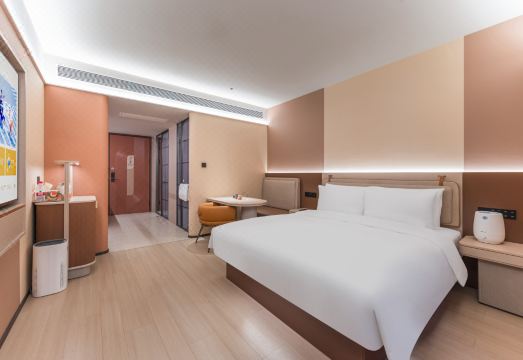 焕新升级|智趣共生|乐活无界 桔子西安高新区半导体产业园酒店3.0乐活产品,是华住集团旗下中高端设计酒店品牌「桔子酒店」的全新迭代力作。以“乐活(LOHAS)”为核心理念,融合智能科技、健康美学与人文关怀,重新定义都市旅居体验,为追求品质生活的现代人羣打造“自在栖息,活力焕活”的理想空间。 【酒店位置】:位于西安市雁塔区丈八六路,毗邻高新区半导体产业园与华为西安研究所,步行可达船舶705所;环普产业园,比亚迪高新厂,数字出版基地,软件新城研发基地,中软国际科技等公司与酒店仅一箭之遥。 【产品设施】:桔子西安高新区半导体产业园酒店全店采用智能客控系统:灯光、温湿度、窗帘等设备一键开启,一键切换“办公模式”“休闲模式”,科技赋能便捷体验。手机app/小程序提前选房,自助Check-in/Check-out,省时高效。全屋搭配智能新风,呼吸自然清新,配备地暖、小冰箱,金可儿零压记忆棉床垫、遮光率99%天幕帘、打造深度睡眠环境。 【低碳环保】:采用环保再生材料家具、可降解洗护用品,践行低碳生活方式。搭配24小时自助咖啡吧+共享商务办公区,提供免费健康轻食。 【健康活力早餐】:打造了碳水快乐区、低脂健康区、面包咖啡区三大区域,突破传统饮食习惯,引领酒店早餐健康营养的新潮流,用低脂、低糖、高蛋白的轻早餐开启一整天的轻松生活,其中“橙皮牛肉面”深受住客喜爱。 【交通便利】:步行可达丈八七路云轨站、5分钟车程可达地铁六号线:丈八六路站,35分钟车程可达达西安北站,40分钟车程可达西安咸阳国际机场。